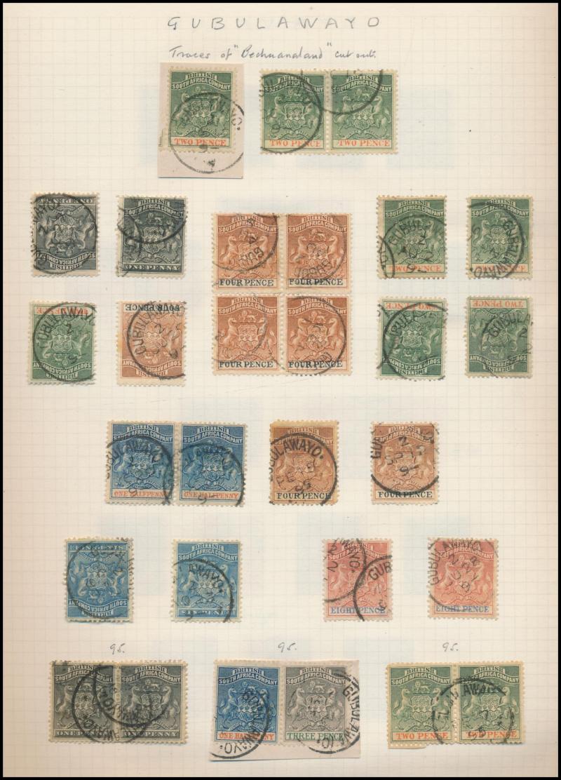 POSTMARKS: Substantial collection from early 'GUBULAWAYO' on Bicoloured Arms a few with traces of 'BECHUANALAND' showing at base
