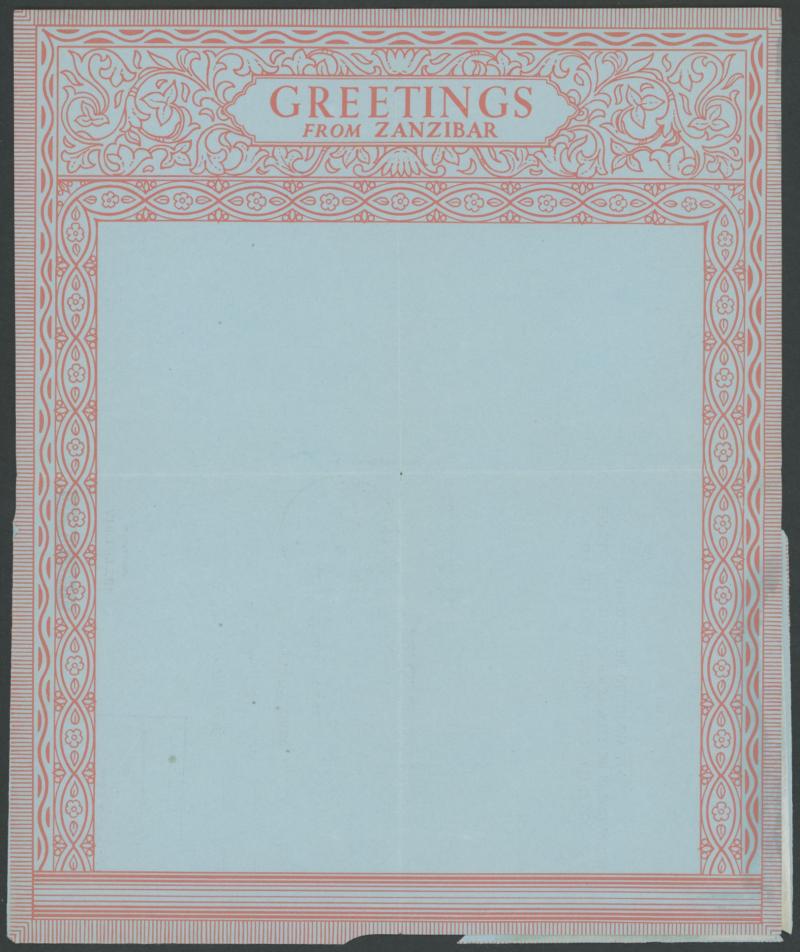 AEROGRAMMES: 1963 three different British-pattern formular aerogrammes, one with ornate 'GREETINGS/ FROM ZANZIBAR' printed within,