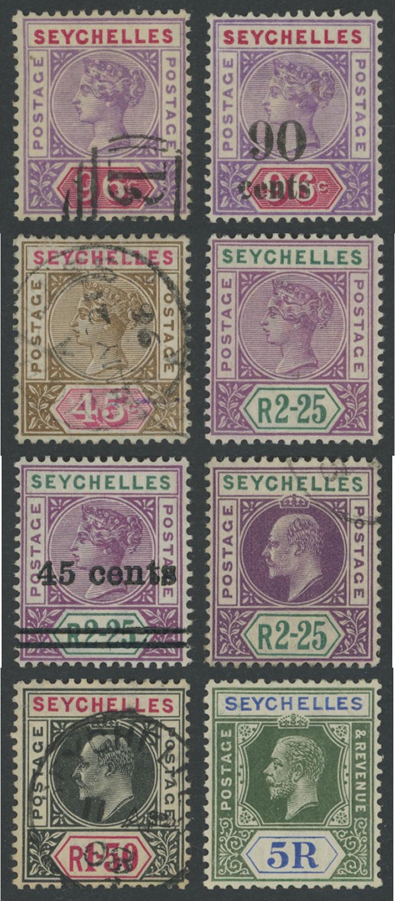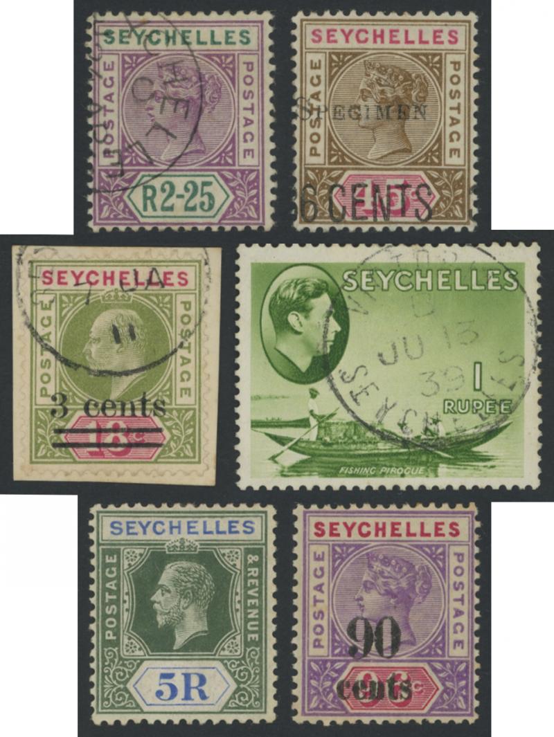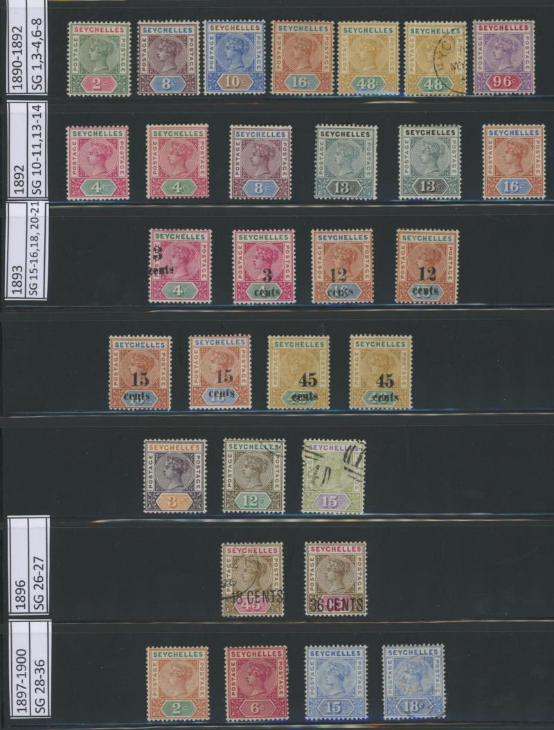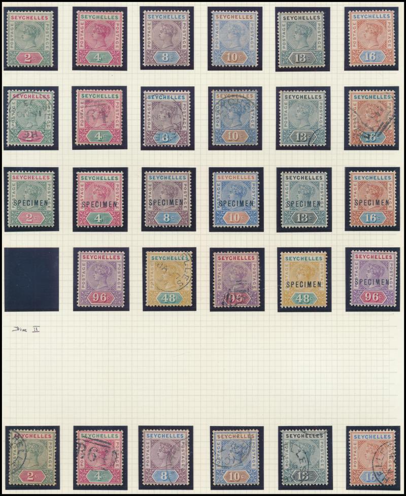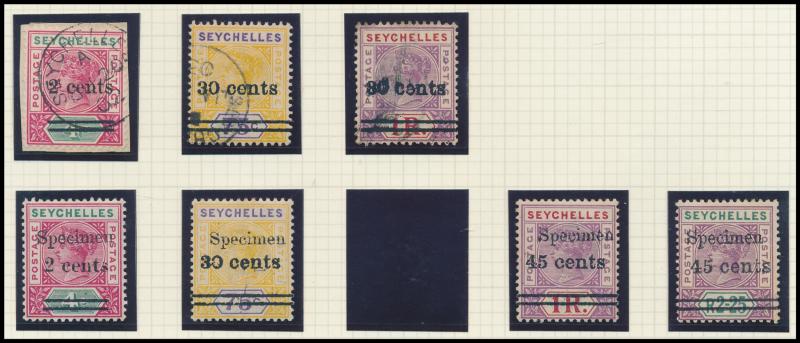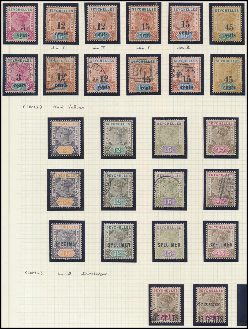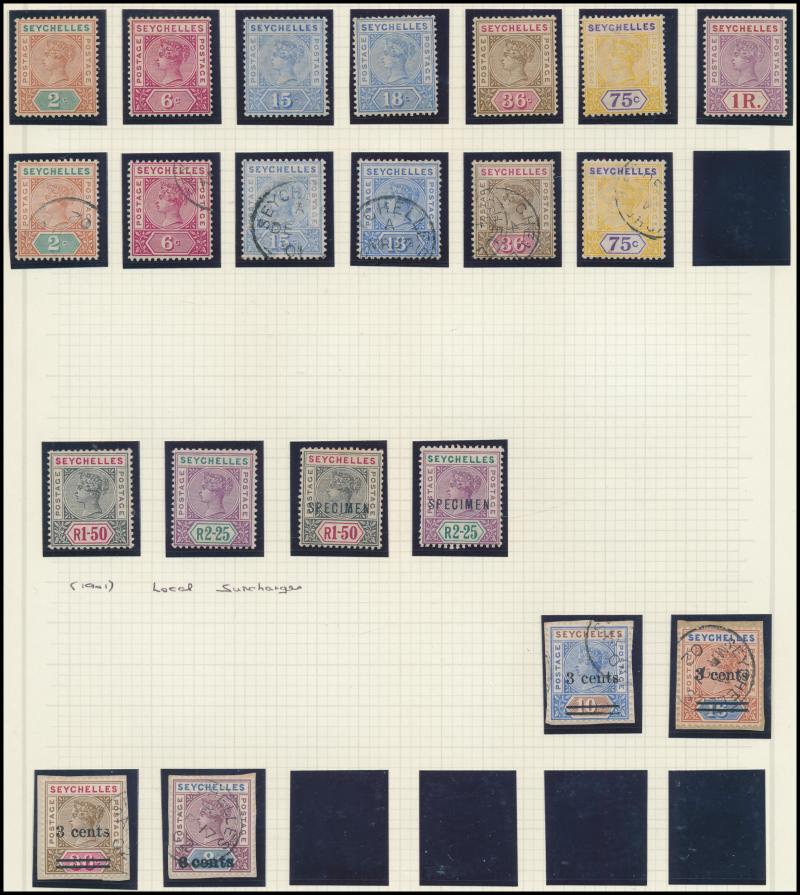 1893 QV Keyplates New Values set *, used & 'SPECIMEN' overprints, 1896 Local Surcharges '36 CENTS' used & duo with 'SPECIMEN' overprints, 1897-1900 QV Keyplates New Colours & Values set * plus 75c & 2r25c used and 1r50c & 2r25c 'SPECIMEN' overprints,