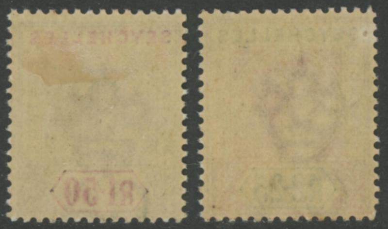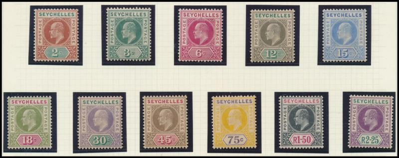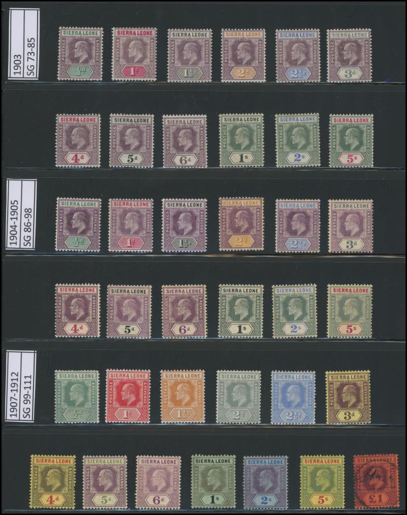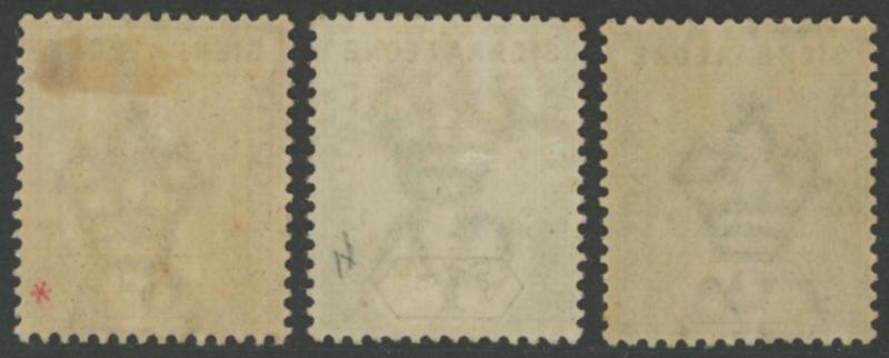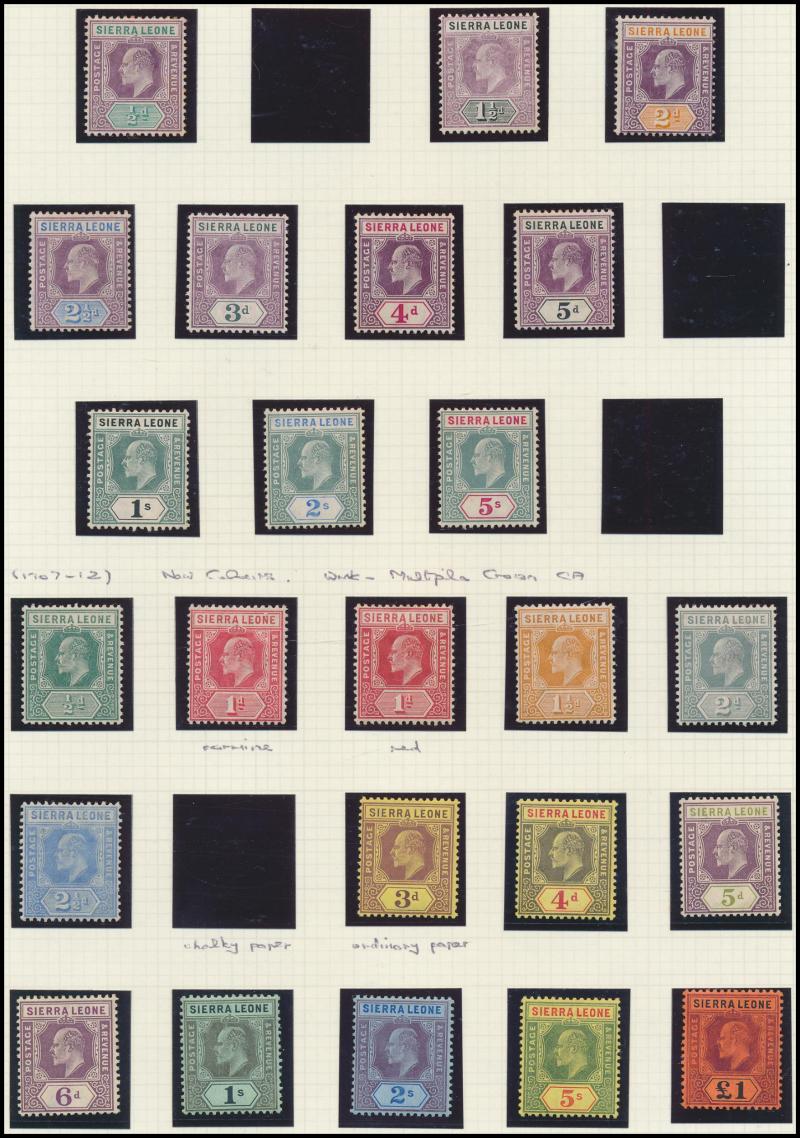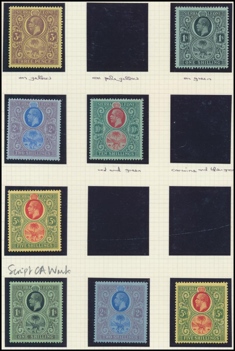 2½d on 6d, 1903 KEVII Keyplates Crown CA Wmk set to 5/-, 1904-05 Multiple Crown CA Wmk set to 5/- * plus 5/- used, and 1907-12 New Colours set to 5/- * plus £1 fiscally used, 1921-27 Multiple Script CA Wmk set to 10/-, 1932 KGV Ricefield & Palmtrees
