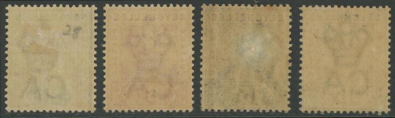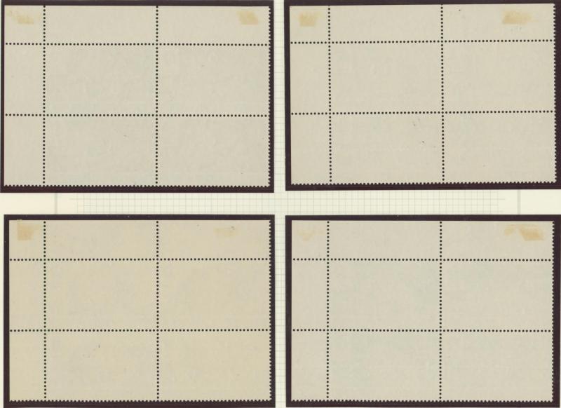 and '6 cents' on 8c purple & ultramarine SG 37-40, the first with 'Specimen' handstamp Samuel Type SY4, the others with 'SPECIMEN' Samuel Type SY3 haphazardly applied one Diagonally Upwards, one Vertically Downwards, and one Diagonally Upwards