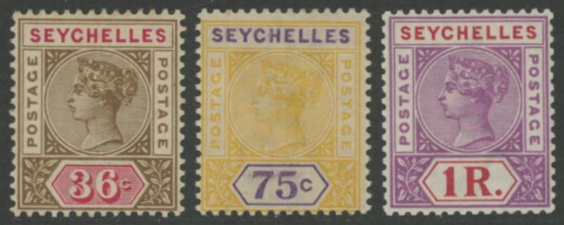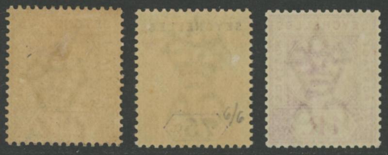 1901 Surcharges on QV Keyplates New Colours '3 cents' on 10c ultramarine & brown, on 16c chestnut & blue & on 36c brown & carmine