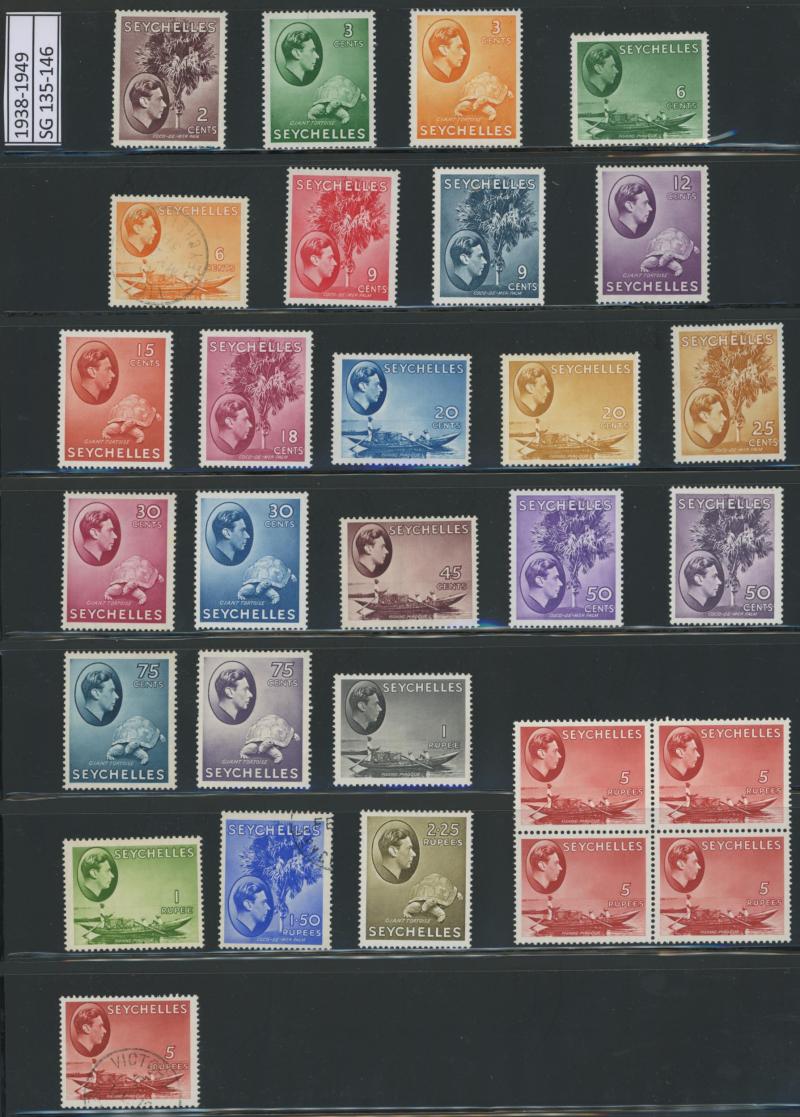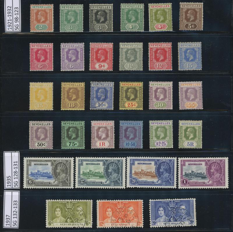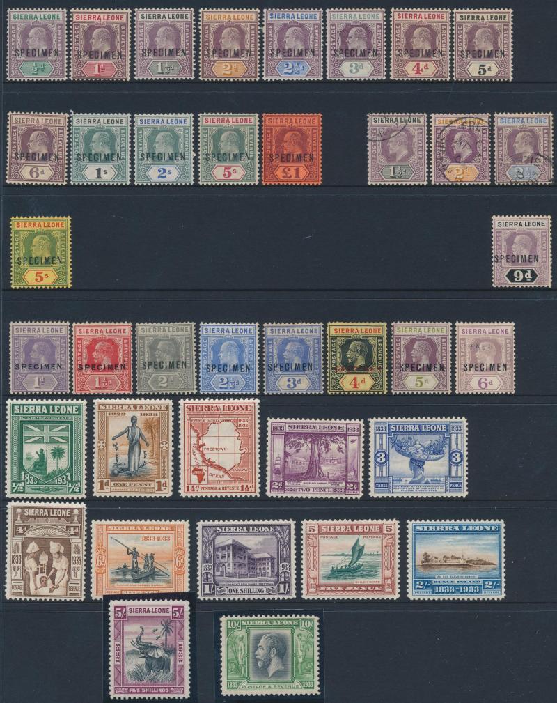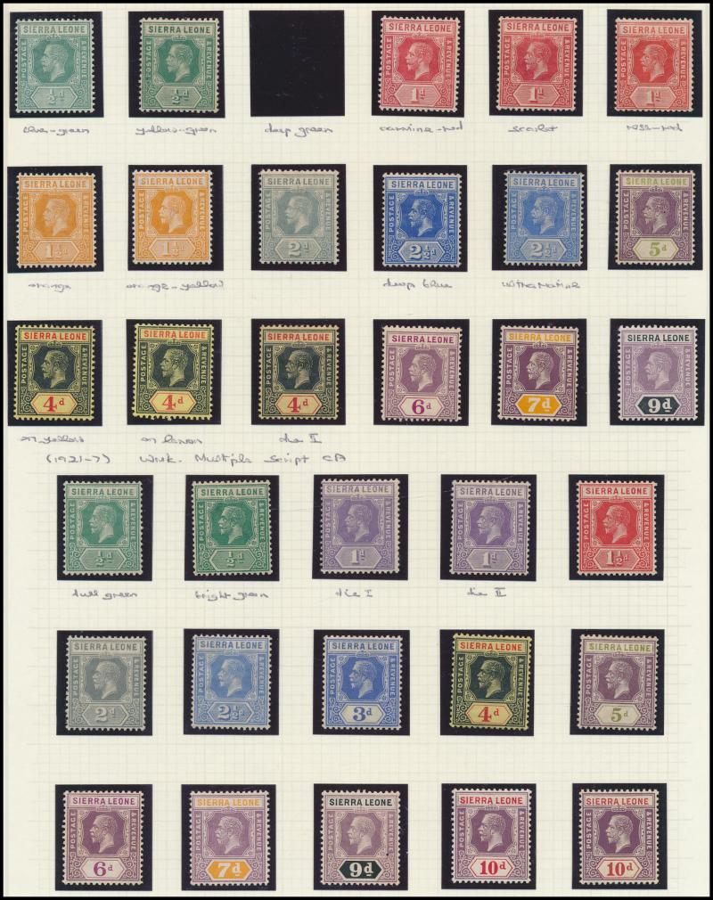 10/- * with extra shades including 2½d deep blue, 1921-27 Multiple Script CA Wmk set to 10/- * plus 1d to 9d 'SPECIMEN' overprints, 1932 KGV Ricefield & Palmtrees set * & used to 5/- (ex 3d), 1933 Abolition of Slavery set *, 1938-44 KGV I Pictorials