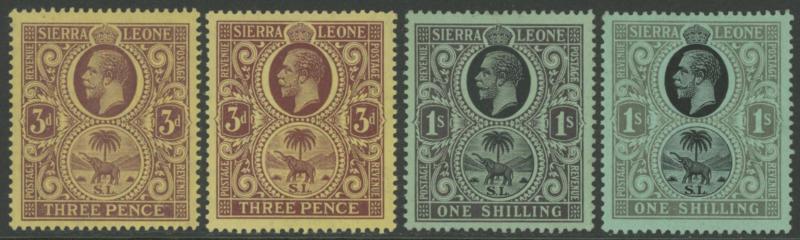 1912-21 KGV & Elephant Multiple Crown CA Watermark 3d and 1/- to £1 SG 116b and 124-128 with extra shades 3d on pale yellow SG