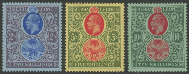 116ba, 1/- on blue-green SG 124a, 10/- carmine & blue-green/green and 10/- carmine & yellow-green/green SG 127a & 127b, most are well-centred, lightly mounted or with small hinge remainders, Cat £800+. (Image1) (Image2)