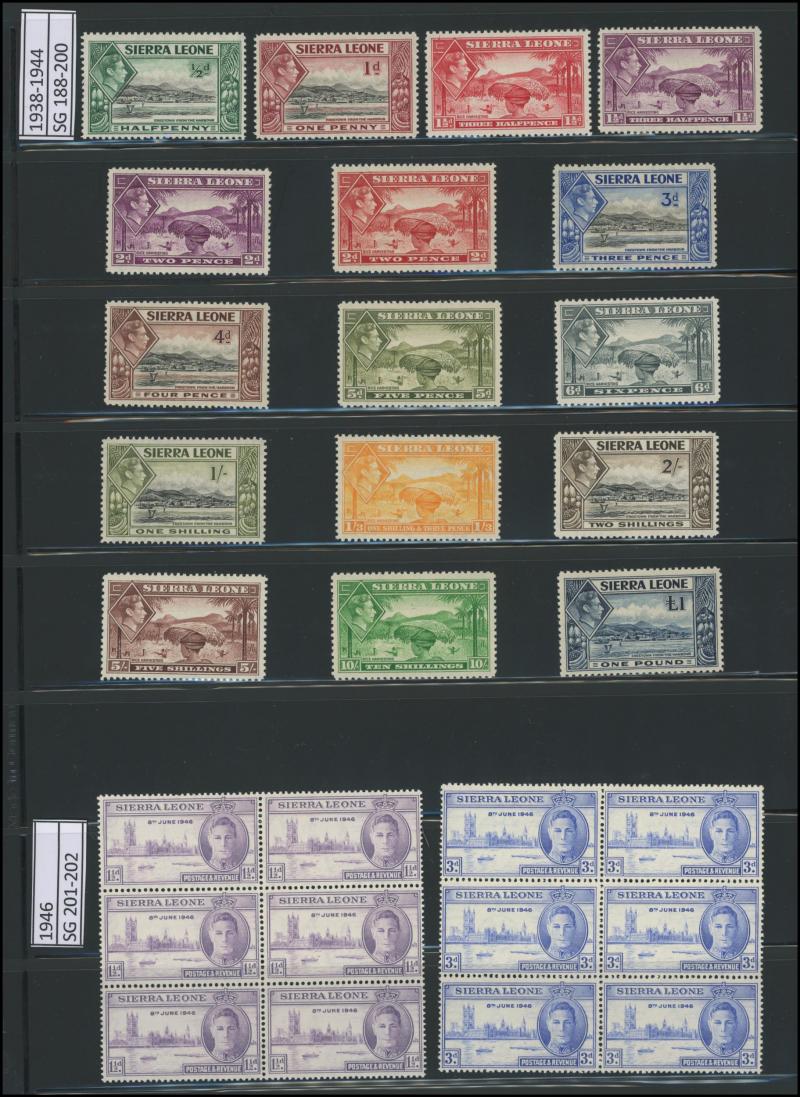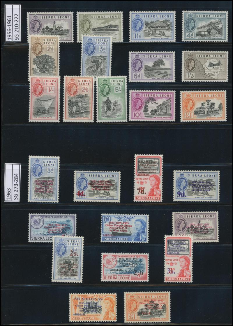 set to 10/- plus extra 10/-, 1933 Abolition of Slavery set to 5/-, 1938-44 KGVI Pictorials set **, 1956-61 QEII Pictorials and 1963 Commemoration overprints sets **, etc, condition generally fine to very fine, Cat £2300+.