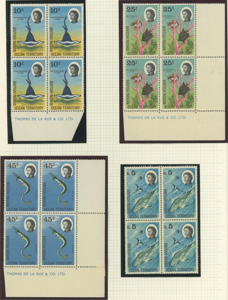Plate Number '1A' block of 6 with two units No Stop After 'O' (minor marginal blemishes), 1968-70 Marine Life set CTO and in De La Rue Imprint blocks of 4 **, 1969 Coral Atolls Plate Number '1A' & Plate Number '1B' blocks of 4 **, 1969 Ships in Plate