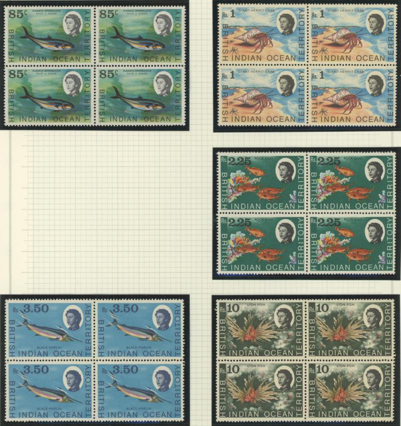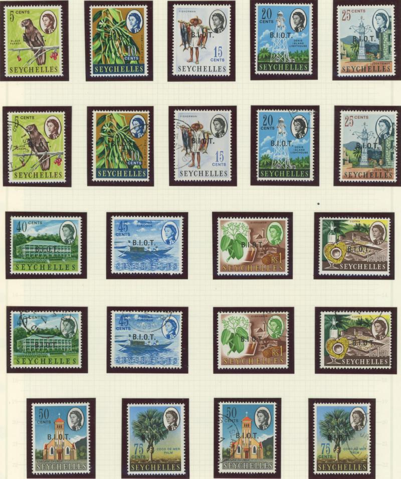 BRITISH INDIAN OCEAN TERRITORY: Selection comprising 1968 'B.I.O.T.' Overprints on Seychelles Pictorials set ** & CTO plus R10