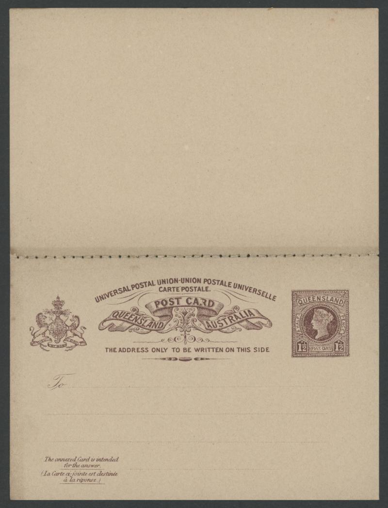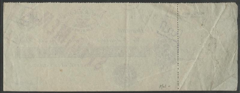 Coat of Arms appearing at right instead of at left on both sides, the horizontal perforations cutting through the heading & indicia on the message side and the heading & indicia misplaced downwards on the reply side, light characteristic stock