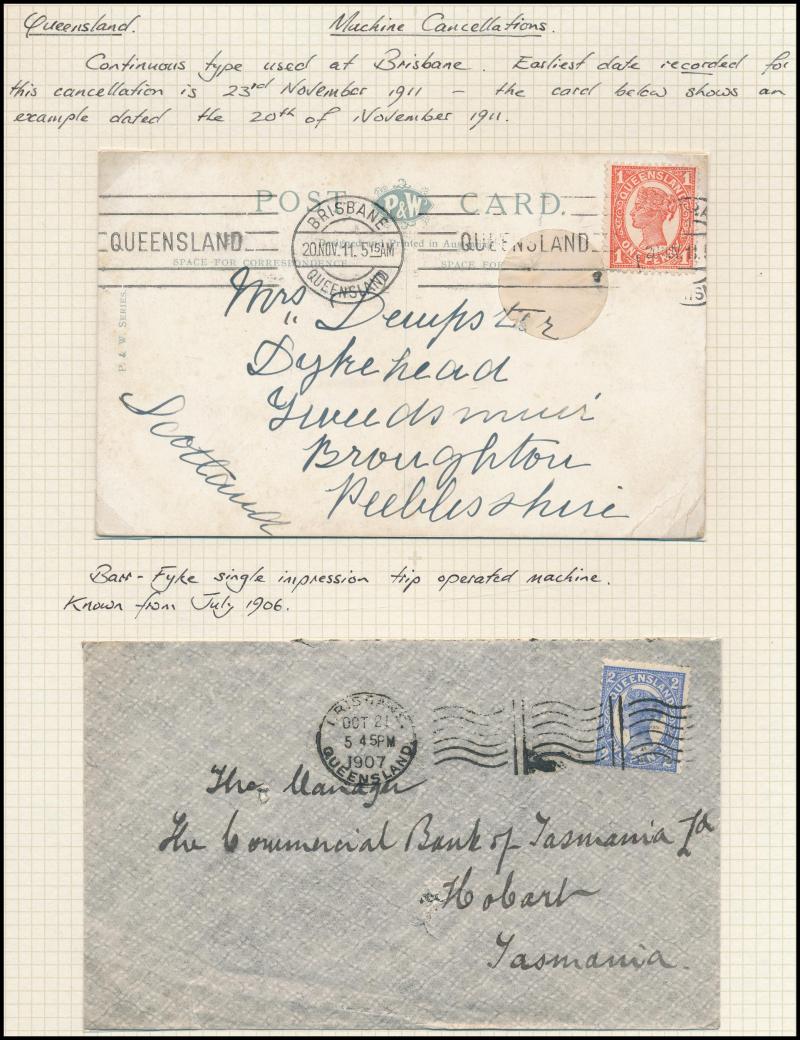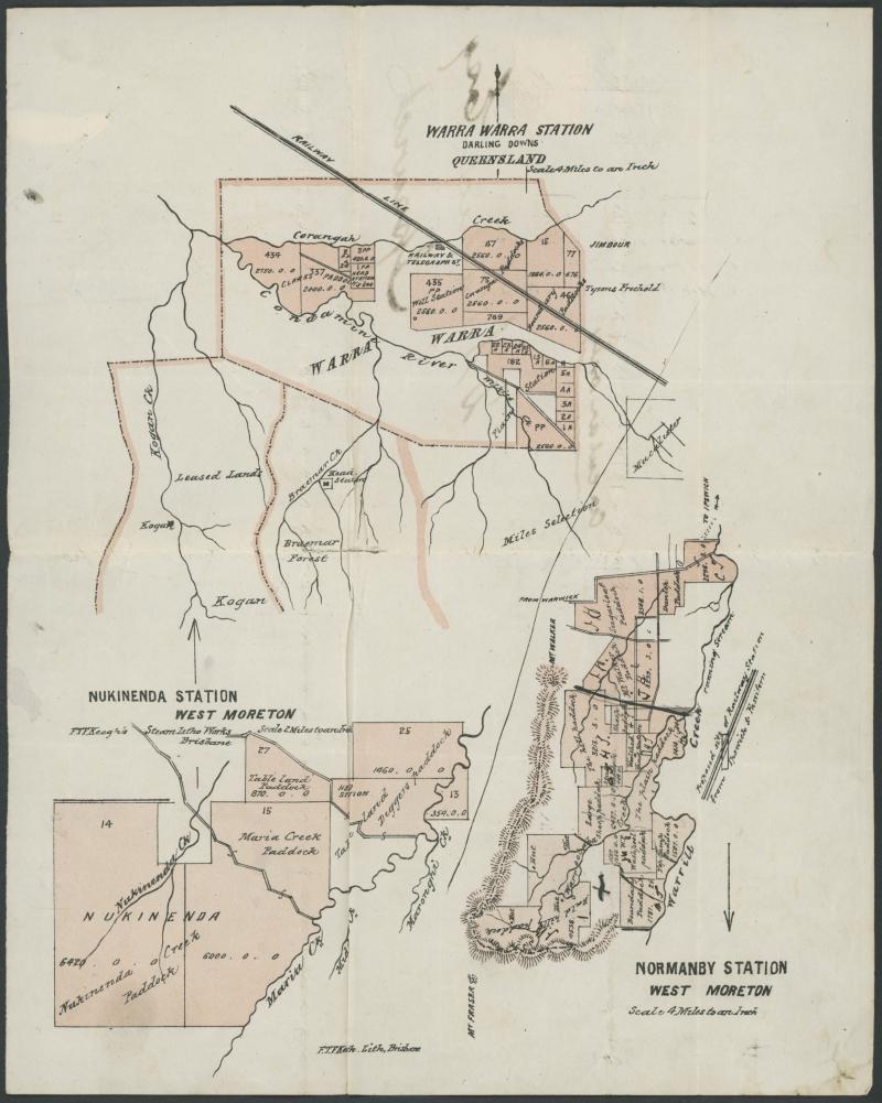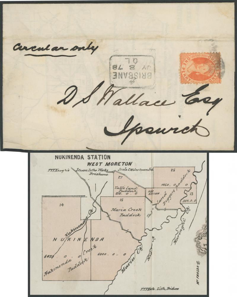 scarce boxed ' 4 /BRISBANE/JY 8 78/Q L' cds alongside, three printed & partly hand-tinted subdivisional maps within of Warra Warra, Normanby and Nukinenda Stations. Ex John Boykett. (Image1) (Image2)