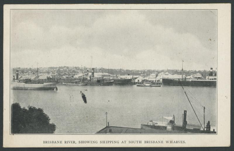 POSTAL CARDS: 1910 QV Sidefaces White Background 1d red with Black & White Views HG 19a 'BRISBANE RIVER, SHOWING SHIPPING AT SOUTH