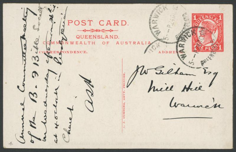 18.12.2010 for $873 (Sale 161 Lot 368). Scarce inland routing, by-passing Brisbane. Stanthorpe is 55km S of Warwick, close to the NSW border.
