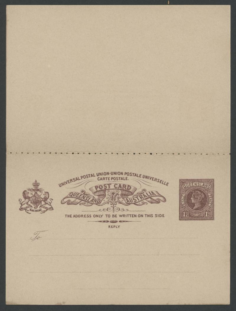 POSTAL CARDS: 1891 QV 1½d+1½d brown 'CARTE POSTALE' heading with Major Misplacement of the Design on Both Sides resulting in the