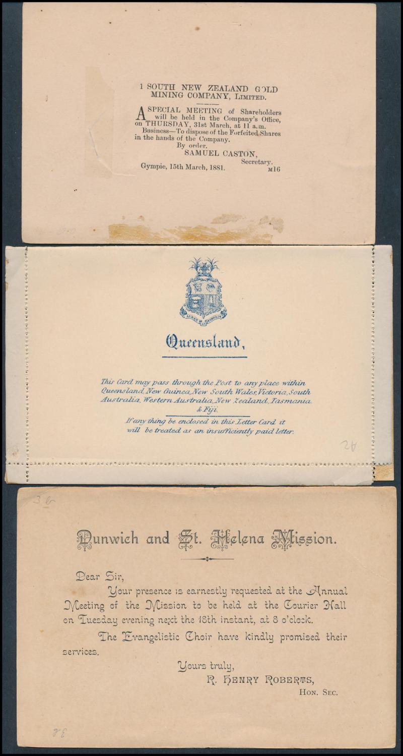 triptych of Maryborough CTO, four unfolded Letter Cards, unused STO Envelopes x8 and Wrappers x10, etc, condition variable.