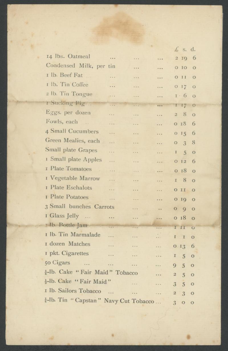 milk, £2/8/- for a dozen eggs and £1/5/- for a packet of cigarettes. Poignant social history.