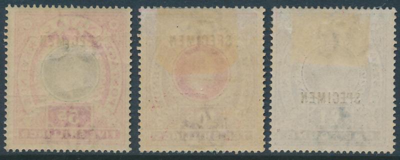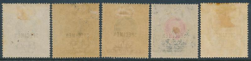 'SPECIMEN' overprint and Crown CC Wmk 5/-, 10/-, £1 & £1/10/- * (the last two with minor aging) plus 10/- & £1 postally used and £10 & £20 fiscally used (the latter with fake postal cancel added), 1904-08 Multiple Crown CA Wmk 1/- & 2/6d *, 2/6d