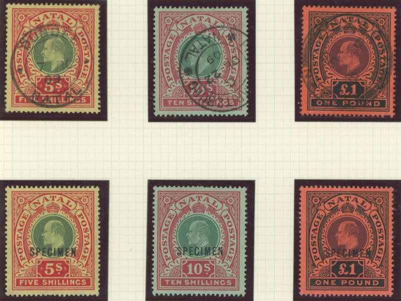 postally used and £1/10/- brown-orange & deep purple fiscally used, and 1908-09 KEVII 'POSTAGE/POSTAGE' set *, 2/6d to £1 used, and 5/- to £1 'SPECIMEN' overprints, condition a little variable but most are fine to very fine, Cat £4250+.