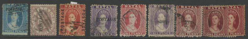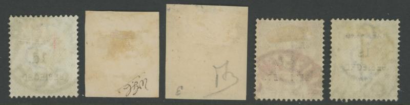 rose-red unused & used, 1863 No Wmk 1d lake *, 1863-65 Crown CC Wmk 1d used & 6d * and 1867 New Design 1/- *, then Postage Overprints 1869 Type 7b 6d lilac used, Type 7d 1d rose used, and Type 7e 1d rose, 1d red & 3d bue used plus 6d lilac *, and
