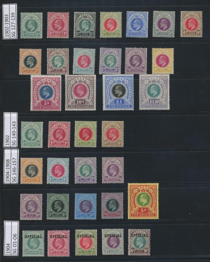'POSTAGE' Surcharges set * plus unoverprinted Fiscals 1d yellow & 6d mauve *, 1882-89 New Design Crown CA Wmk set *, then 1902-03 KEVII Keyplates Crown CA Wmk set plus Crown CC Wmk high values to £1/10/- and 1904-08 Multiple Crown CA Wmk set to 2/6d
