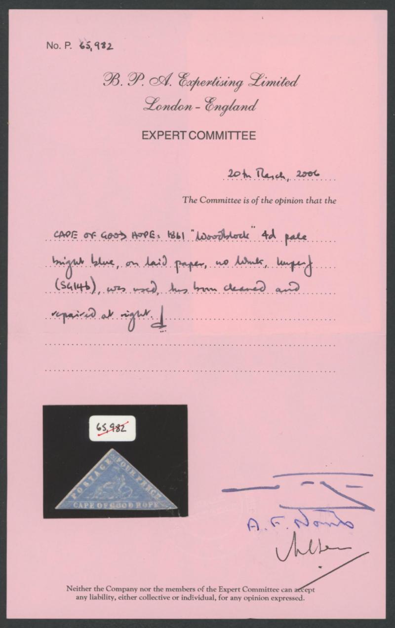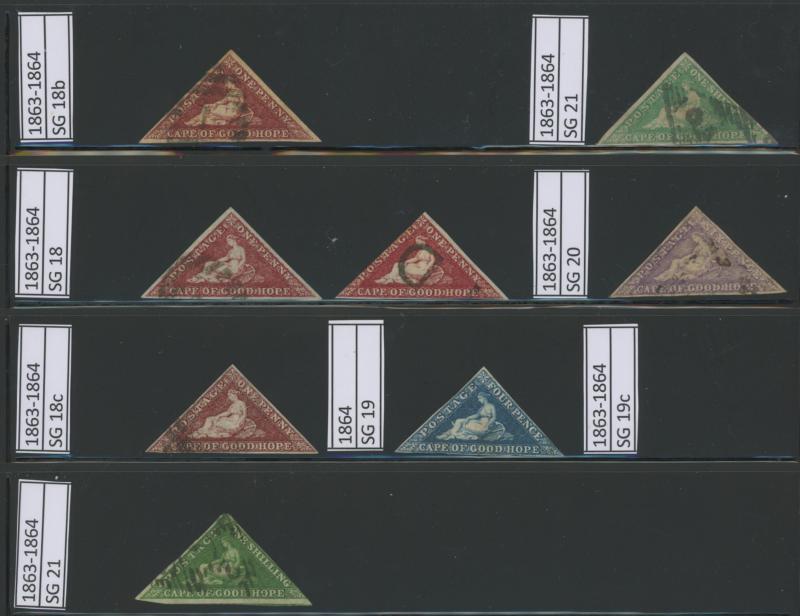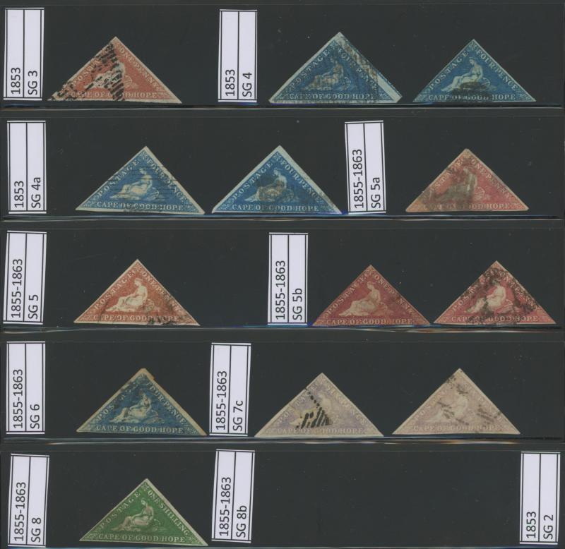 face; 1861 OHMS entire with free frank of "Charles Bell" who is credited with having designed the Cape Triangles; and a few others.