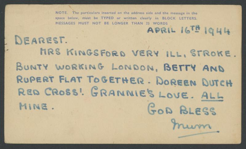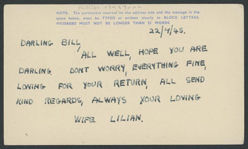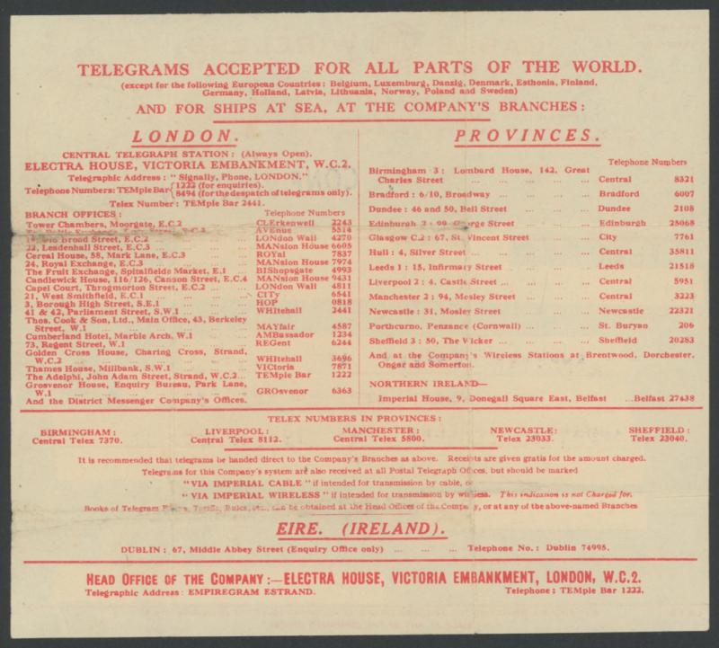 The people in Siam are being very good to us ...". Plus the telegram he sent from Rangoon and covering roneo'd letter advising the telegram was sent free of charge, and that the same privilege would be afforded for a reply.