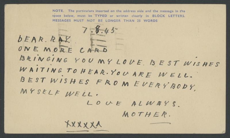 1945 (Sep 12) Indian-pattern Forces Air Letter headed "POW Reception Unit/Bangalore India", endorsed "Ex PW Mail" and countersigned