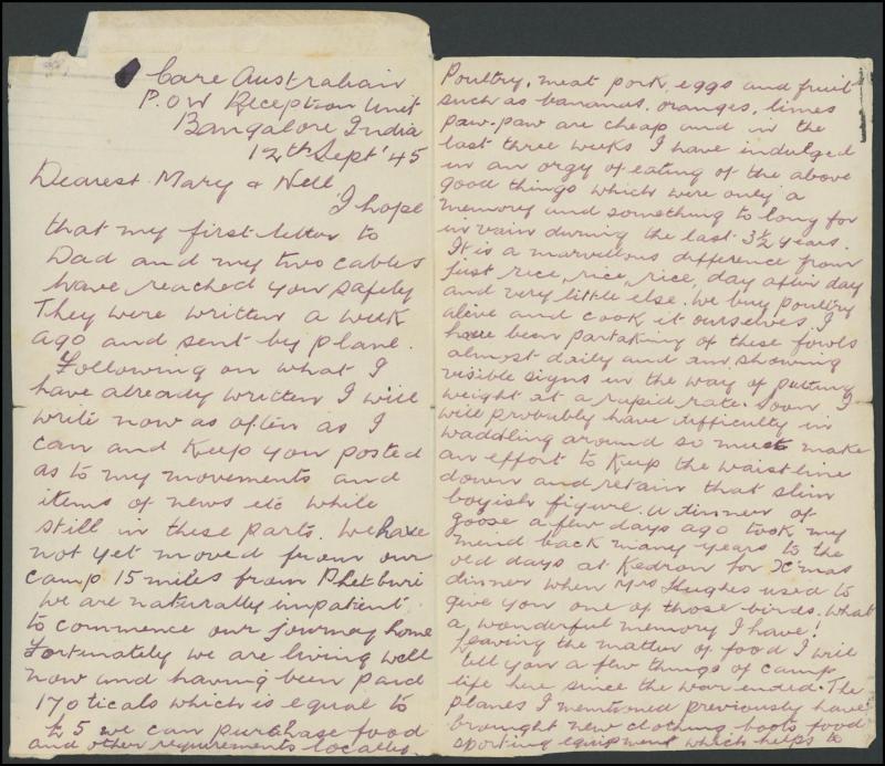 lot are the only repatriation items we have seen to Australia with an Indian connection. And from this letter, it is clear that the released POWs weren't expecting to go to India. (Image1) (Image2)