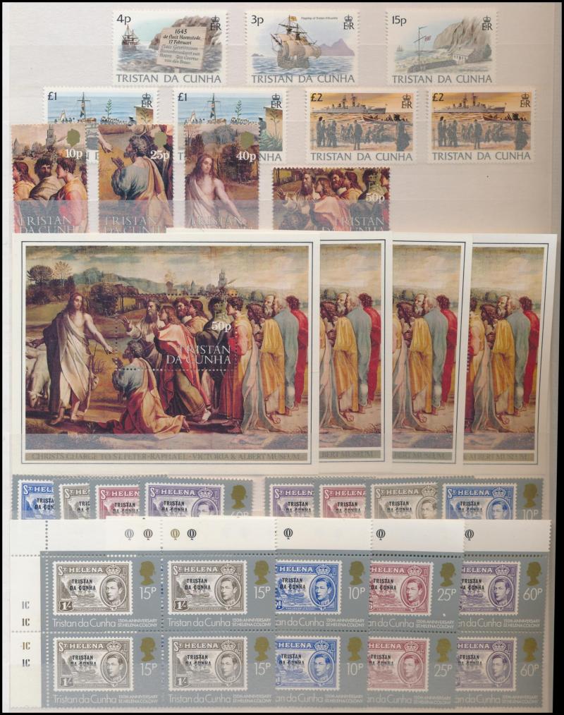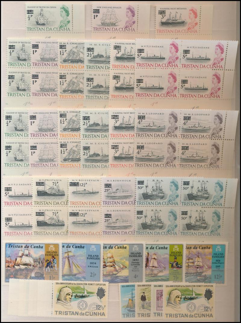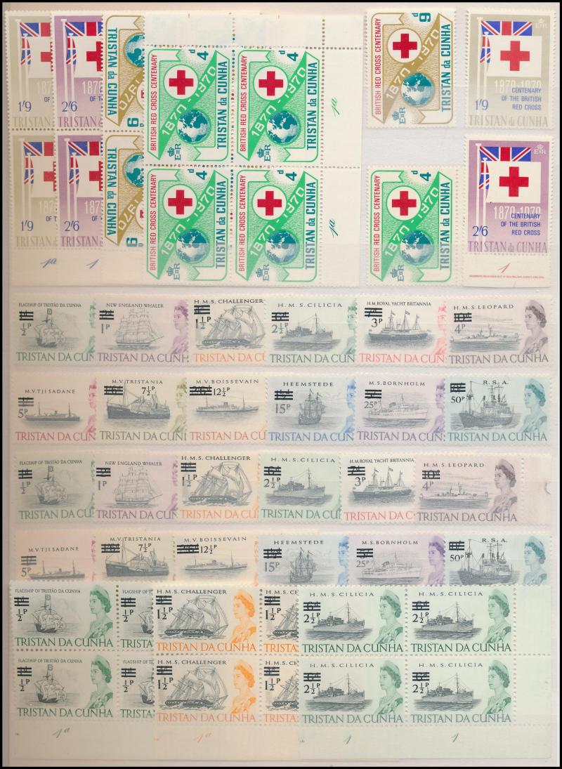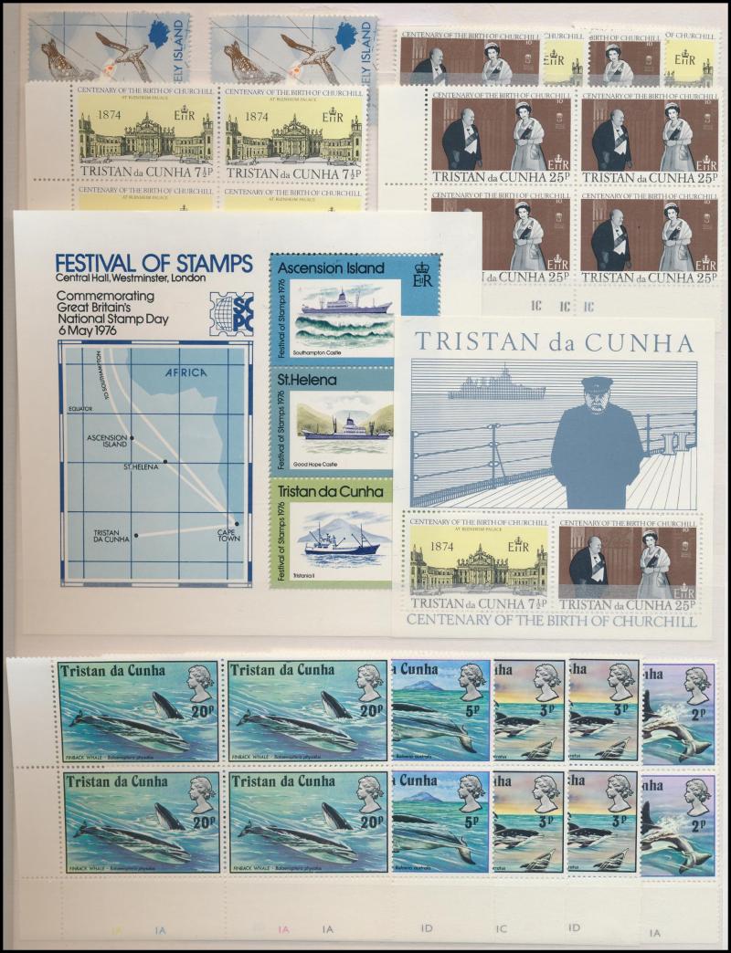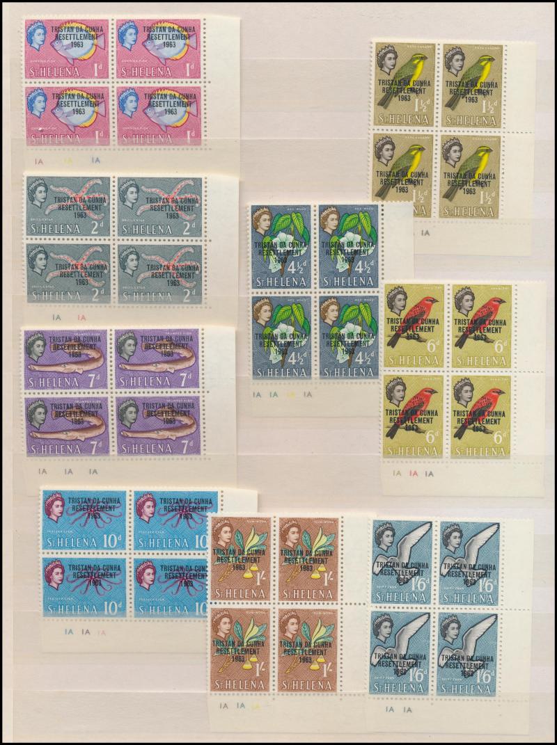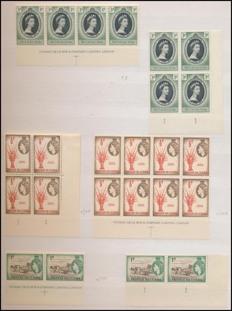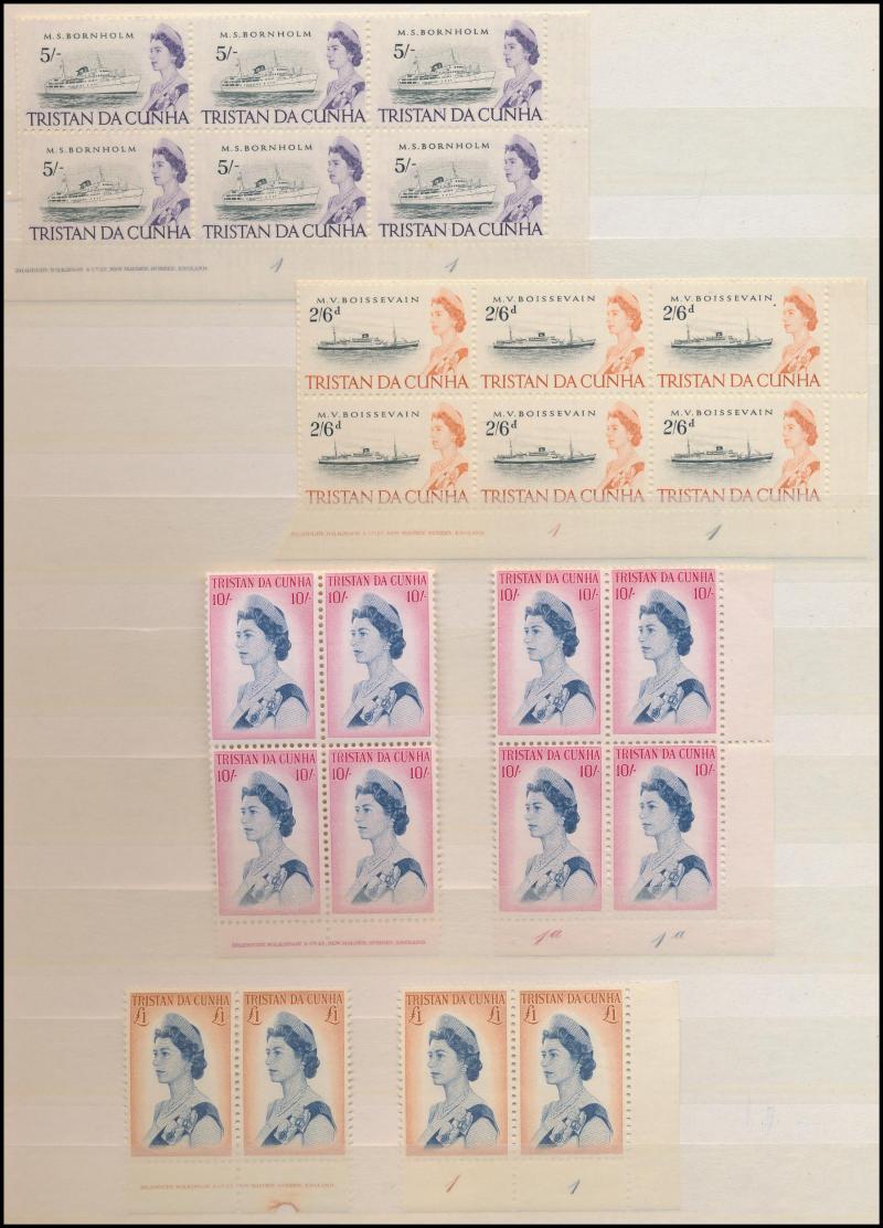 containing blocks with imprints or plate numbers, and album with 'Gough Island Scientific Survey 1955-1956' cover and FDCs (29), condition very fine, Cat approx £1000.