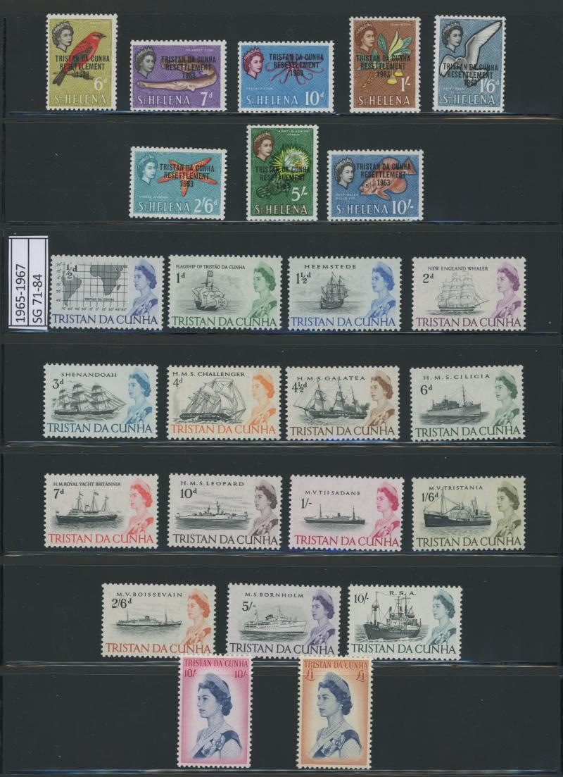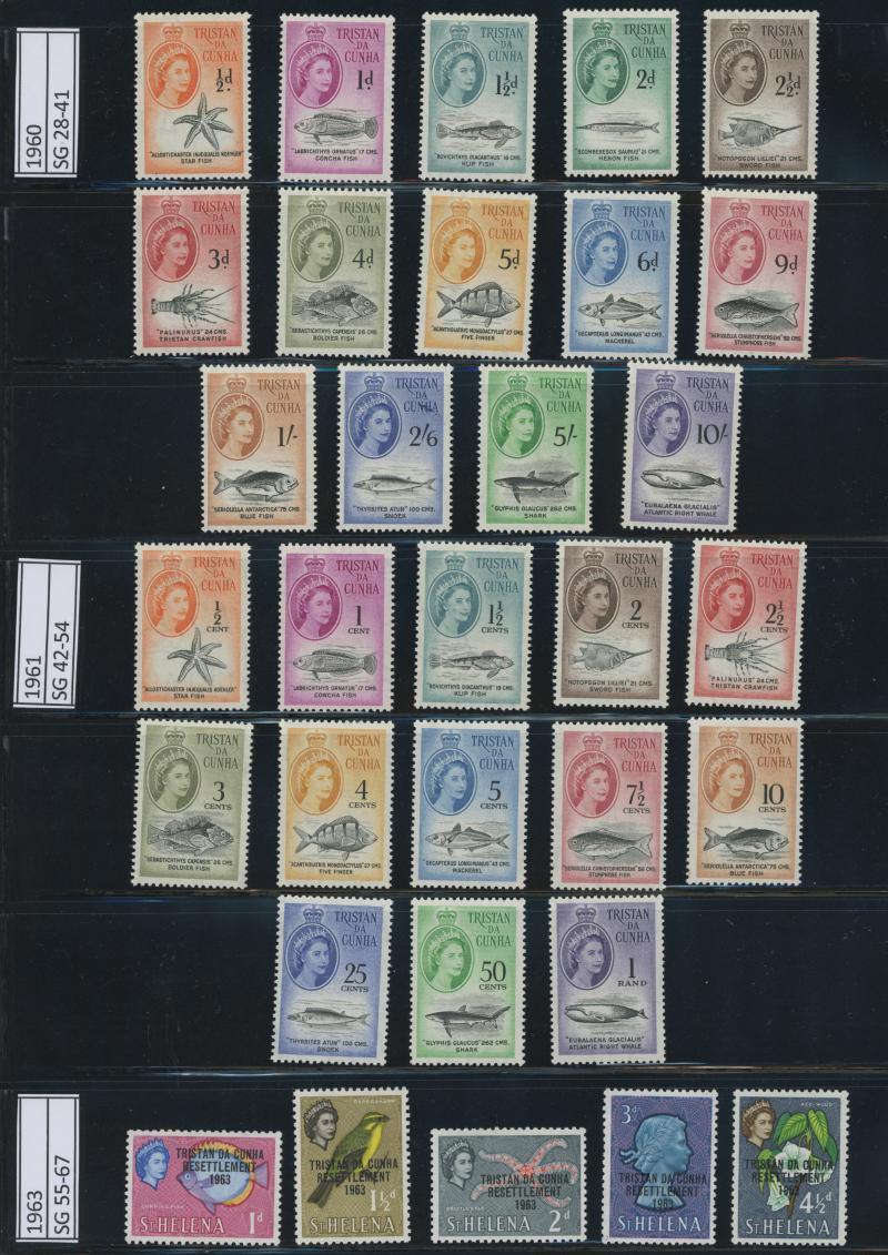 1960 & 1961 QEII Marine Life & New Currency, 1963 Resettlement Overprints on St Helena QEII Pictorials, and 1965-67 QEII & Ships, very fine, Cat £475.