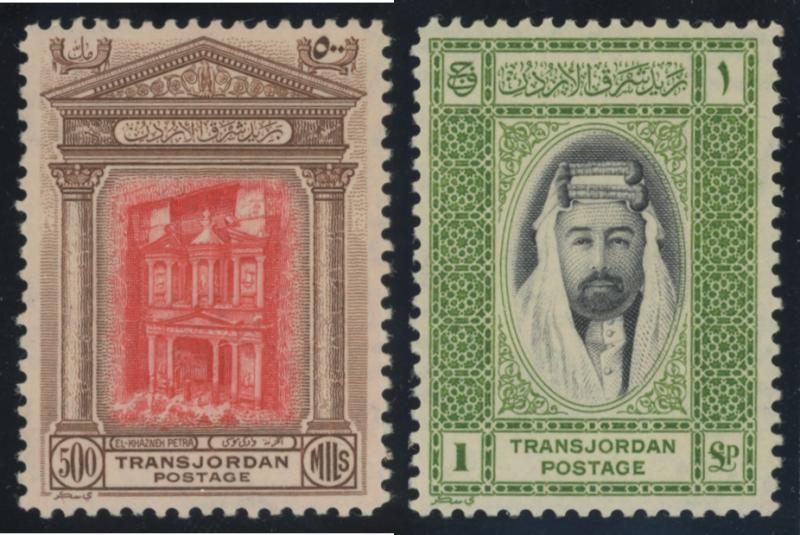 the 500m Petra & £P1 Emir Abdullah with tiny hinge remainders, Cat £1000+ (US$1000+) for mounted. A colourful and very attractive set.