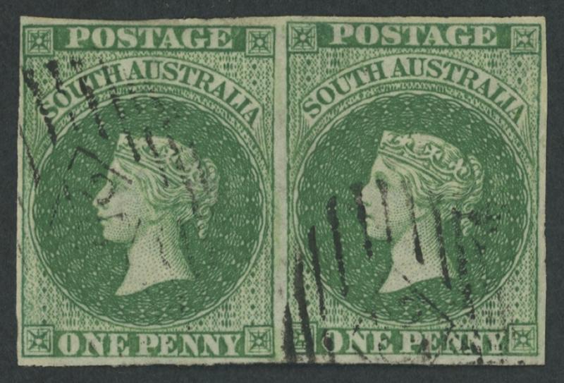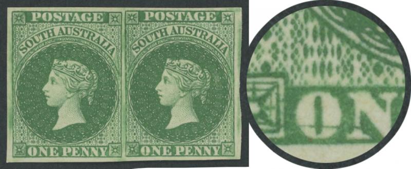 to large margins, the right-hand unit with Line through 'ON' of 'ONE'. Very scarce and superb. Ex Harry Lower: sold at our auction of 12.5.2007 for $1456 (Sale 128 Lot 321). More attractive than Don Pearce's marginal pair that sold for $688 (Sale 249