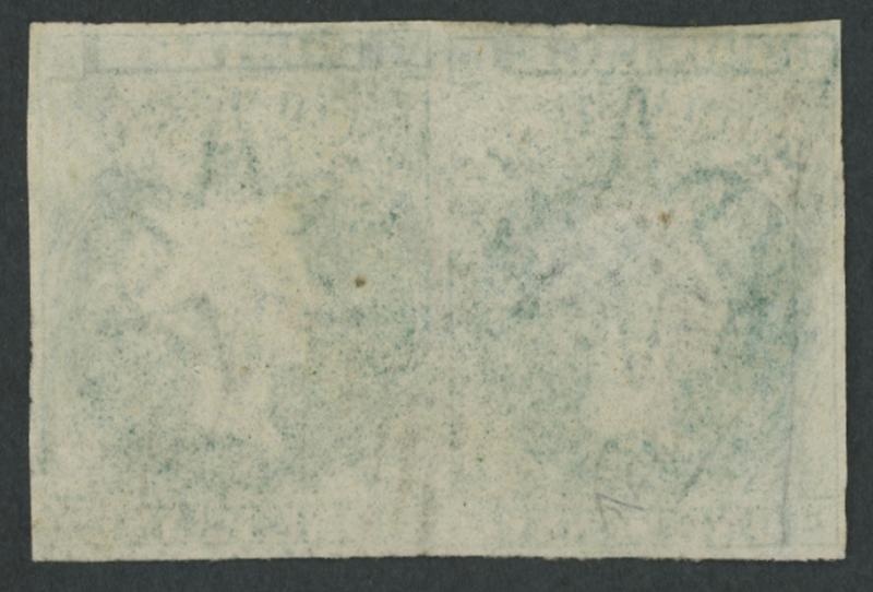 1855 QV Perkins Bacon London Printings Large Star Watermark 1d dark green SG 1 horizontal pair, margins close to good, the