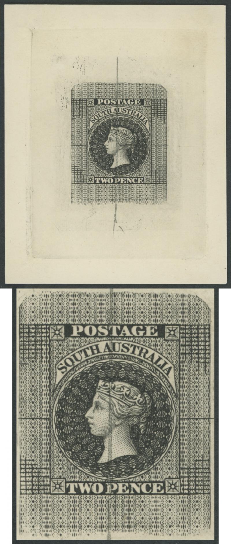 1855 QV Perkins Bacon London Printings 2d posthumous uncleared die proof of the defaced die in black on wove paper (65x83mm). A