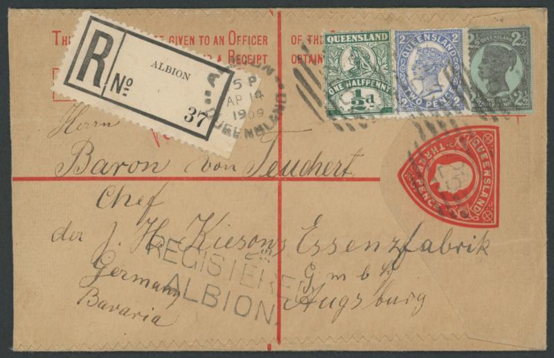 1909 (Apr 14) double-rate usage of McCorquodale KEVII 3d Registration Envelope to Bavaria (which was autonomous from Germany until