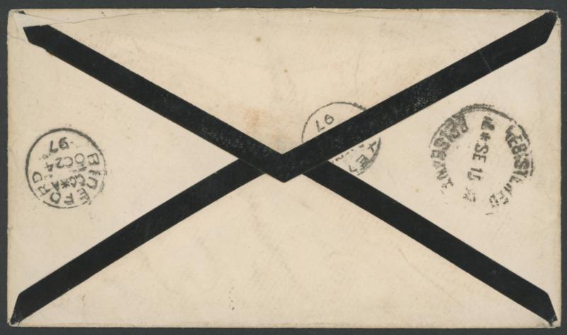 tied by 'R'-in-oval cancels, double-oval 'POST OFFICE CAIRNS/9SEP97/ QUEENSLAND' datestamp - believed to be the only recorded example - in blue below, minor blemishes. Sold at our auction of 24.11.2018 for $455 (Sale 231 Lot 541). (Image1) (Image2)