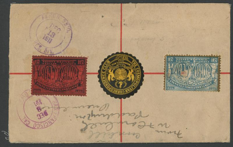 Francisco transit & Akron arrival of 'DEC/13/1911'. Lovely item. Ex Hugh Campbell - illustrated by him at page 83 - sold for $1904 - and Bernie Manning: sold for $2155 (Sale 234 Lot 229). Only one other cover with the 'A.R.' marking has been