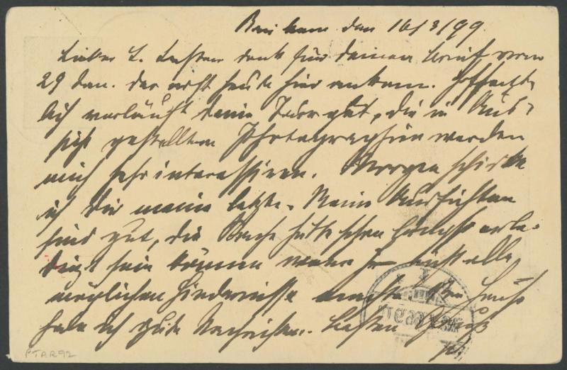 Dollar Chop & very fine German-type 'TSINTAU/24 4/99/CHINA' arrival cds all on the face, forwarded to Germany with 'DARMSTADT' arrival cds also on the face, slightly bumped corners. A marvellous usage. Ex Trevor Davis: sold at our auction of