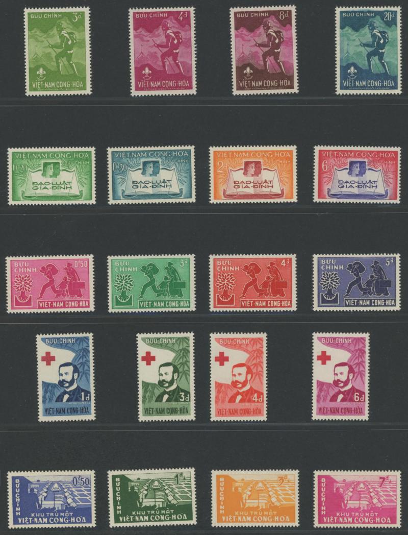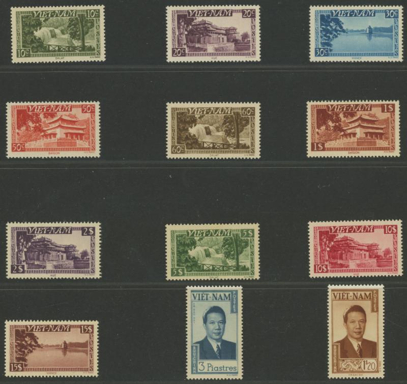 Scott 1L27-31, Elephants 1L32-33 set x2 and Cathedral 1L36, Cat US$300; 1948 Ho Chin Minh 2d & 3d SG N2-3 CTO, Cat £200; and National Liberation Front (Viet Cong) 1963-76 issues apparently complete mostly CTO with some duplication plus 1964