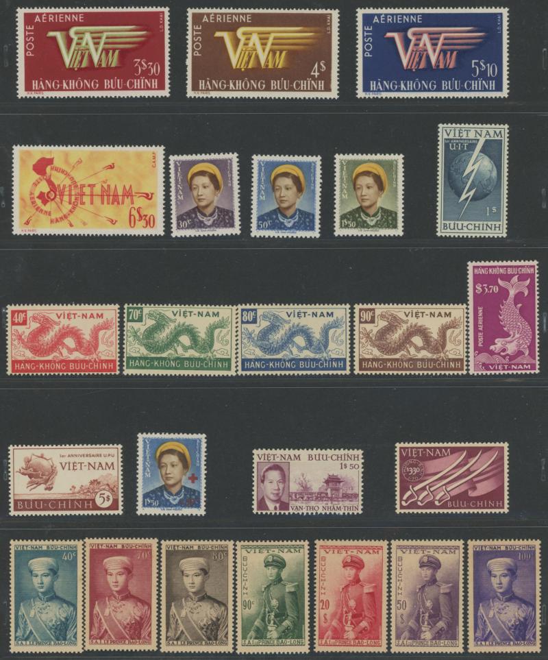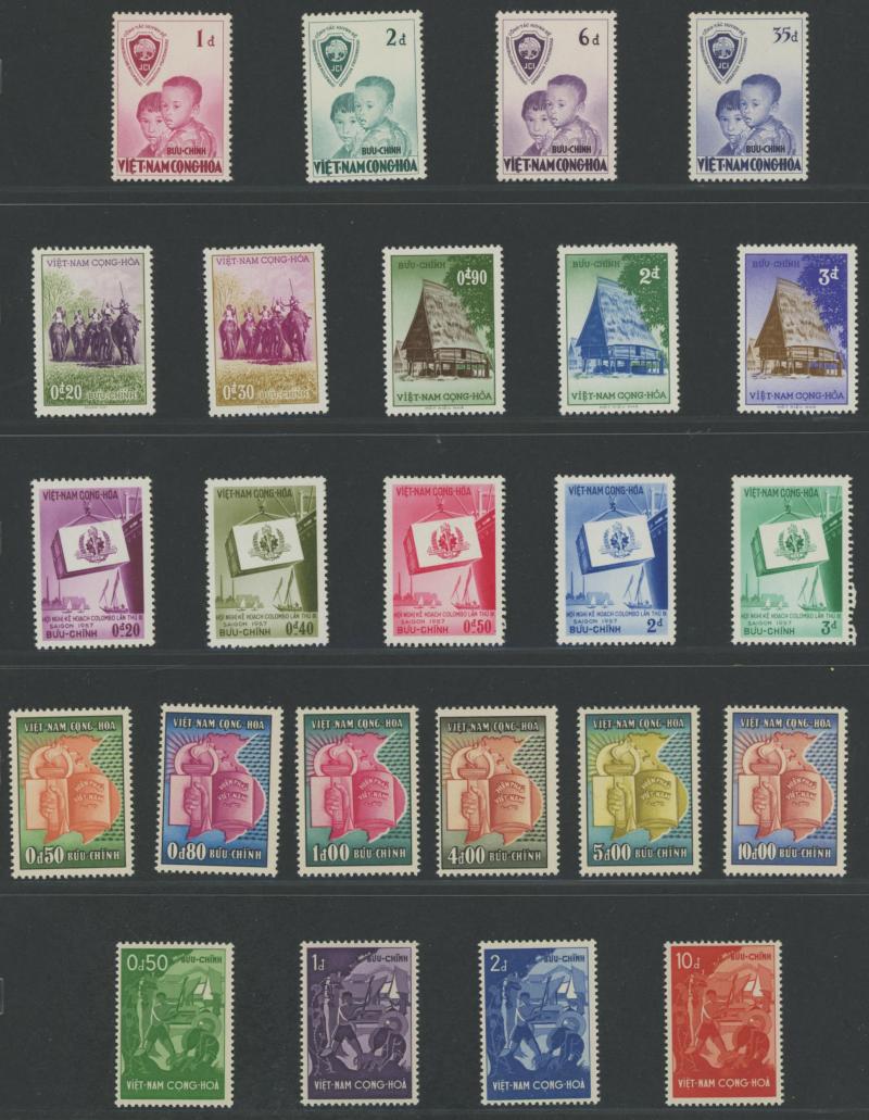 SOUTH VIETNAM: 1951-73 issues apparently complete (except for the 1969 Military Frank) in expensive Safe hingeless album, the first