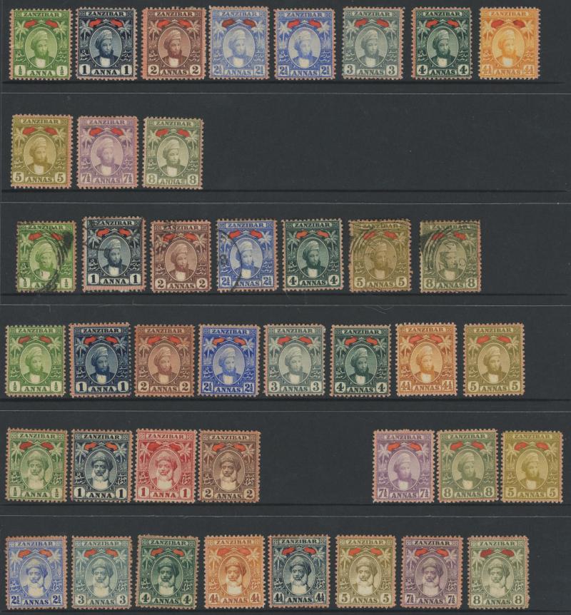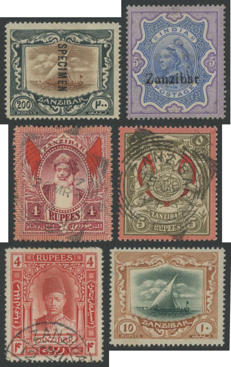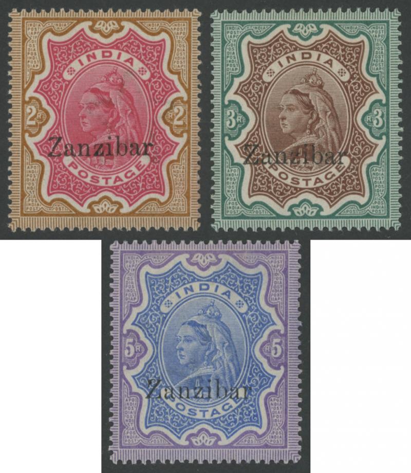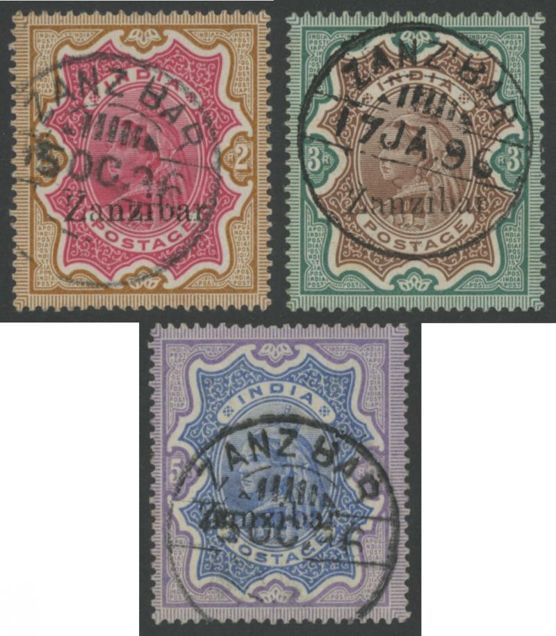 with complete or largely-complete 'ZANZ BAR' (no 'I') 1896 cds, Cat £450. (3) (Image1) (Image2)