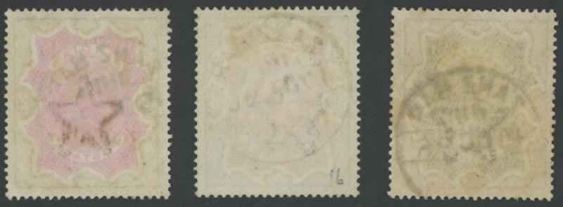 1895-96 Overprints on India QV 2r carmine & yellow-brown, 3r brown & green and 5r ultramarine & violet SG 19-21, well-centred, each