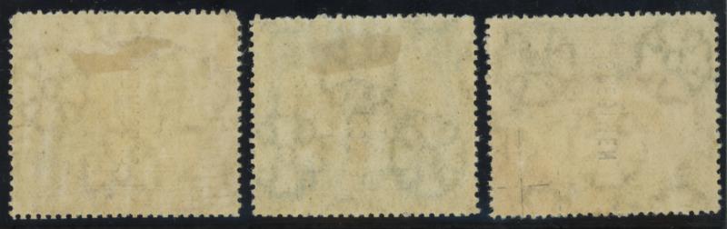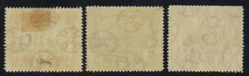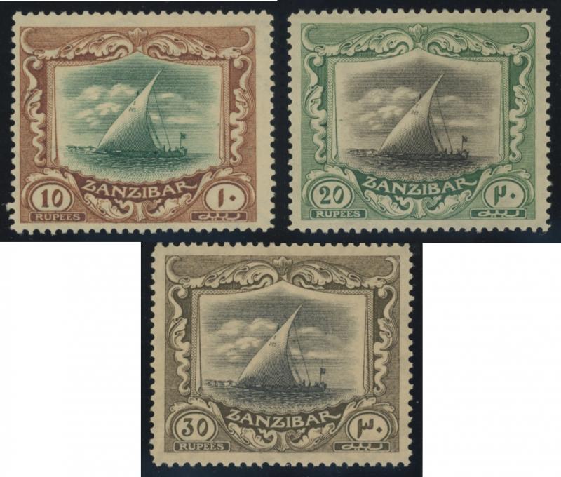 1913 Sultan Khalifa bin Harub Multiple Rosettes Watermark Dhow 10r, 20r & 30r SG 260-260c (Scott 134-136), well-centred, some gum