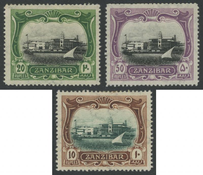 1908-09 Sultan Ali bin Hamoud Port & Palace 10r, 20r & 50r SG 239, 240 & 243 (Scott 113, 114 & 117), well-centred, the 10r with an
