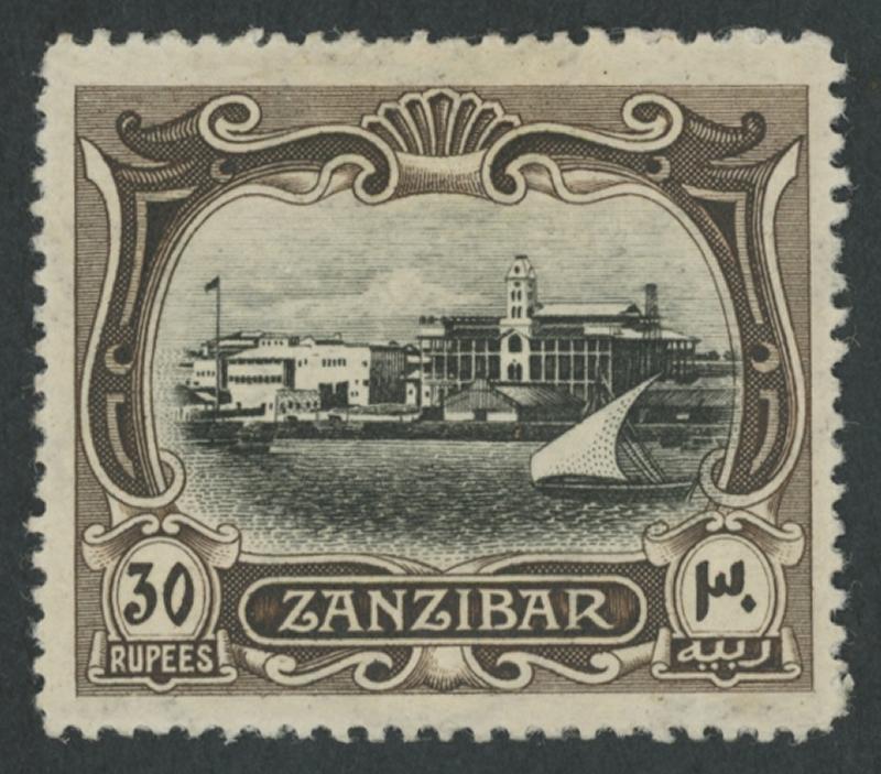1908-09 Sultan Ali bin Hamoud Port & Palace 30r black & sepia SG 241 (Scott 115), well-centred, a few characteristic uneven perfs &