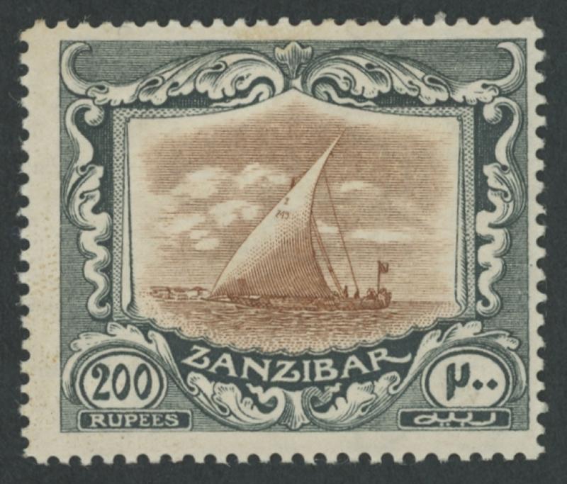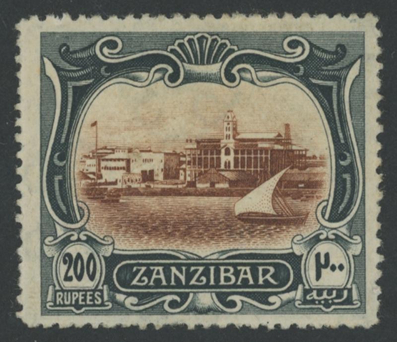 1908-09 Sultan Ali bin Hamoud Port & Palace 200r brown & greenish-black SG 245 (Scott 119), characteristic slightly uneven perfs