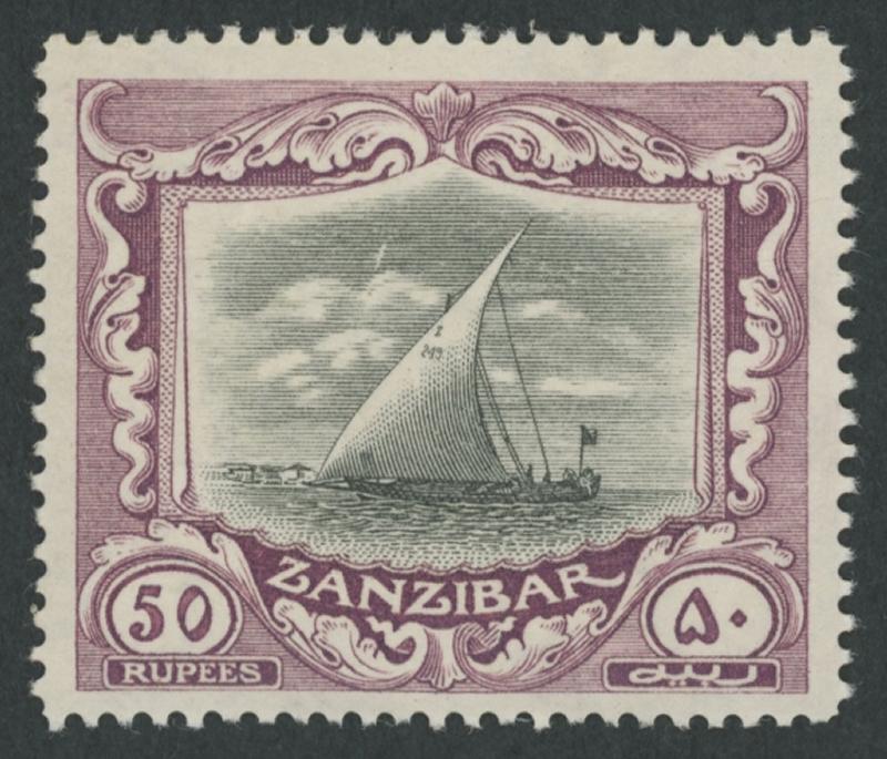 1913 Sultan Khalifa bin Harub Multiple Rosettes Watermark Dhow 50r black & purple SG 260e (Scott 138), rich colour, well-centred,