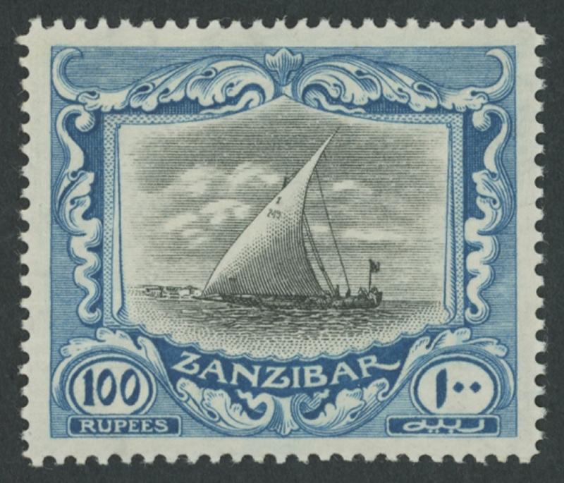 1913 Sultan Khalifa bin Harub Multiple Rosettes Watermark Dhow 100r black & blue SG 260f (Scott 139), rich colour, exceptional