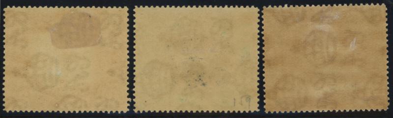 295-297 (Scott 175-177), the 10r with minor gum tropicalisation & a small hinge remainder, the 20r well-centred & lightly mounted, the 30r well-centred with even gum tropicalisation & a small hinge remainder, Cat £1100 (US$1060). (3) (Image1) (Image2)