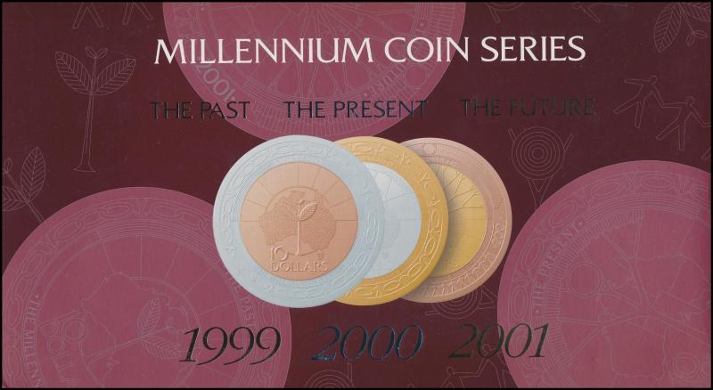 Proof remainders comprising 1999-2001 Millenium Coin Series $10 bi-metal cased set of three Proofs with certs and cardboard outer