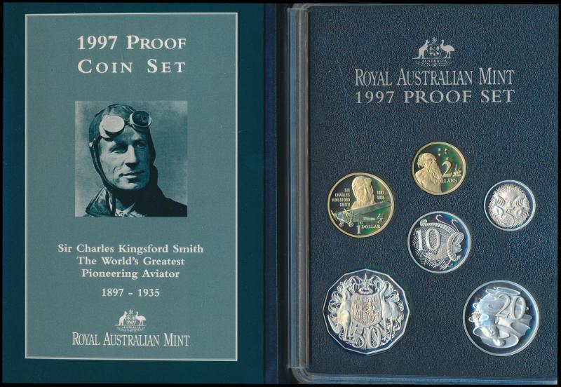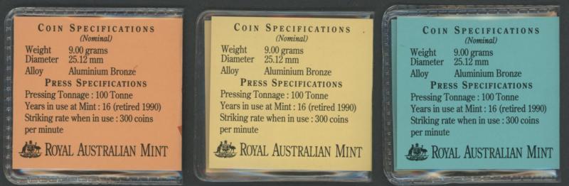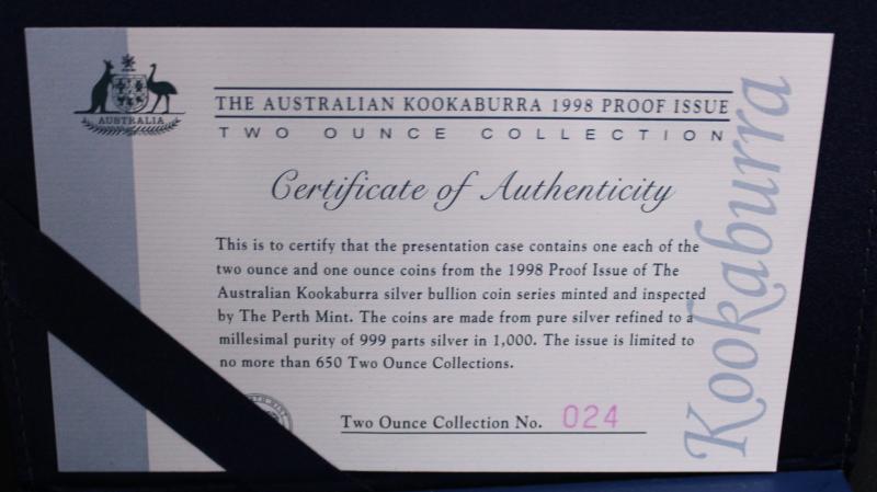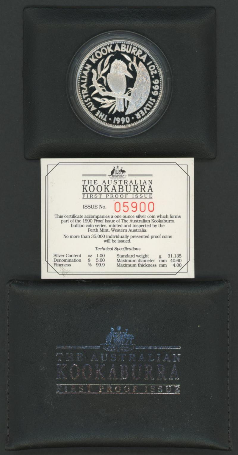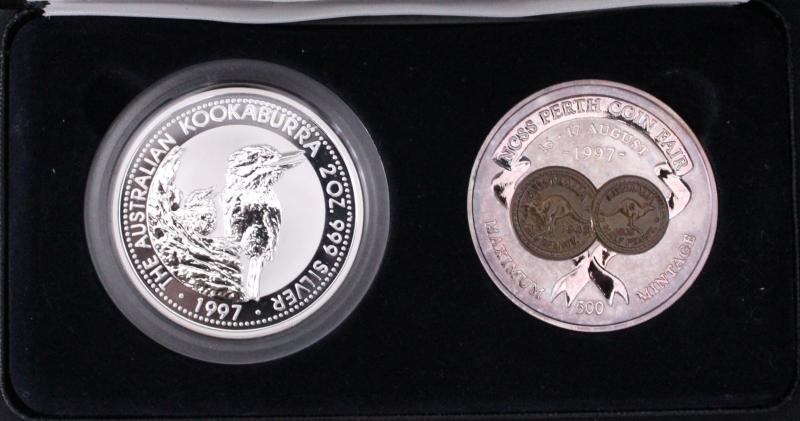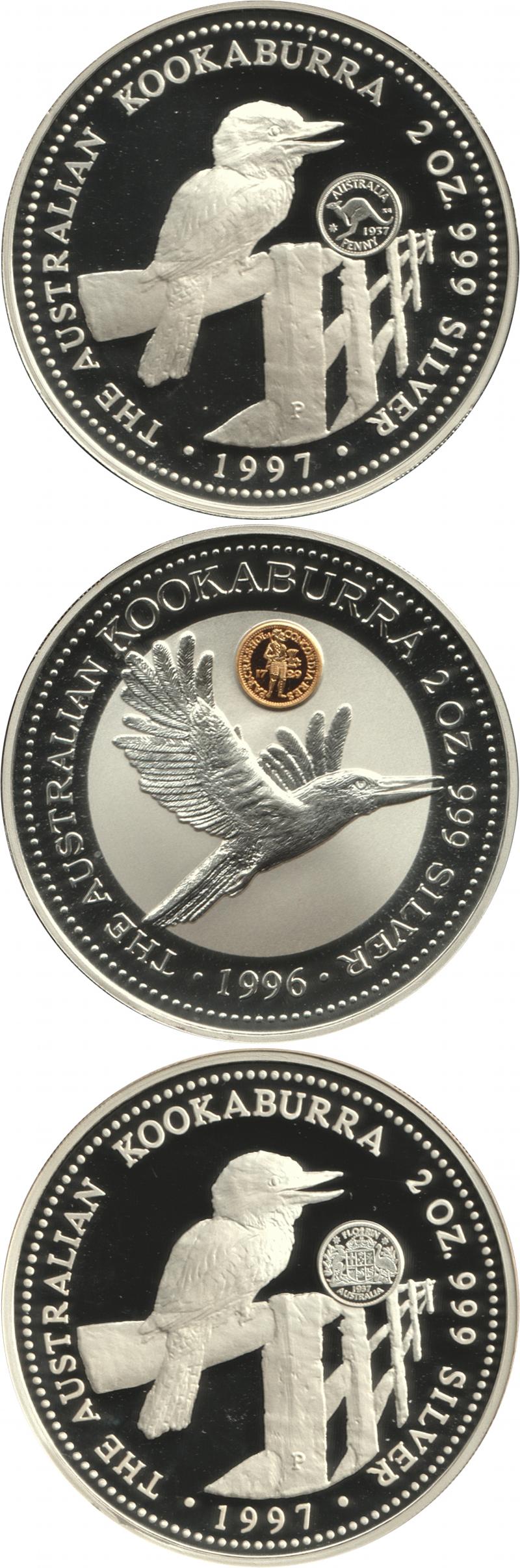 1996-98 cased silver (0.999) product with 1oz Kookaburra 1996 Proof, 1997 'Edison', and 'Netherlands' Privymarks; 1997 Old